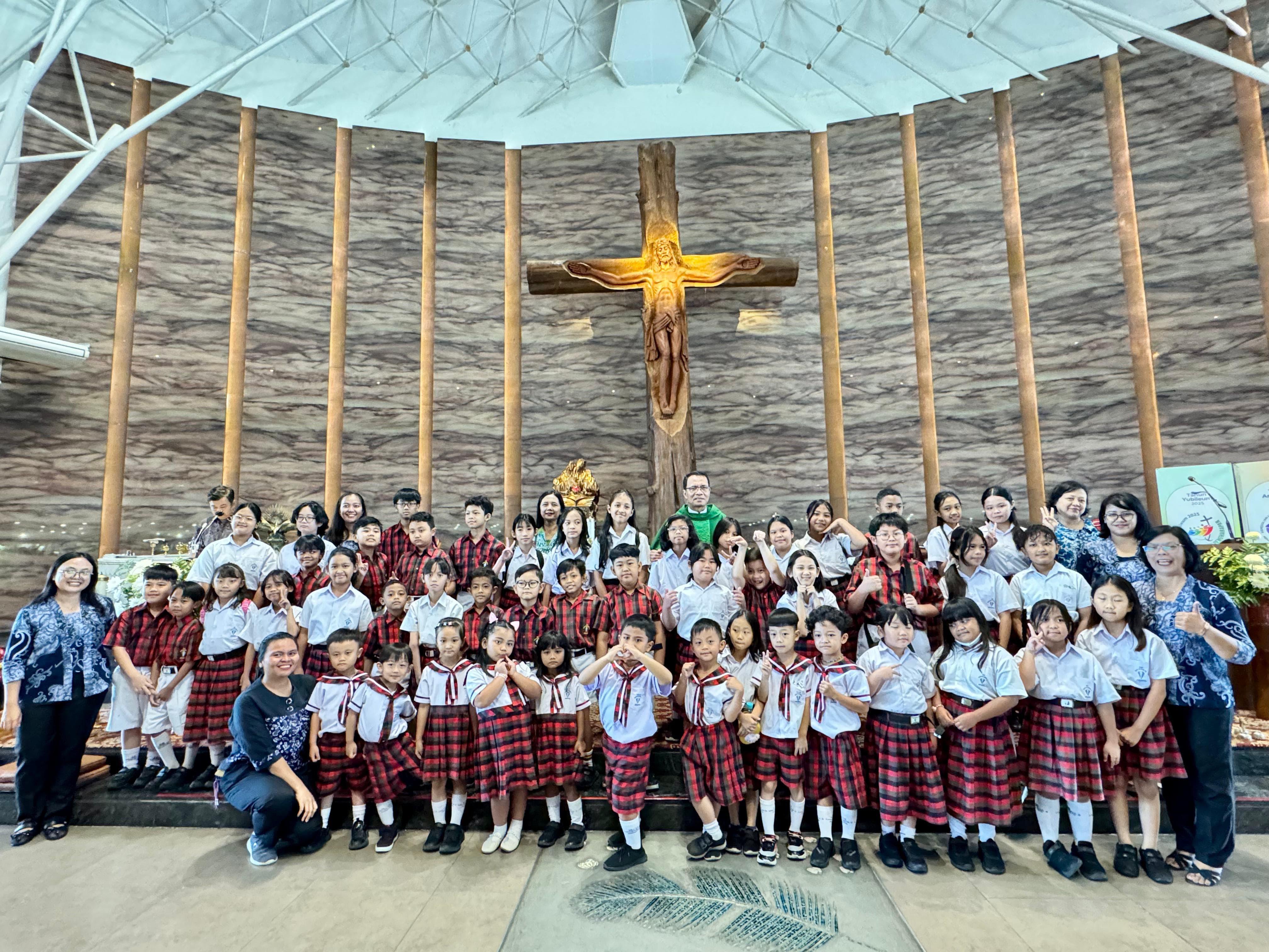 Anak-anak SD Tarakanita 3 Melayani Tugas Koor dengan Iringan Angklung di Paroki Kristus Raja Pejompongan